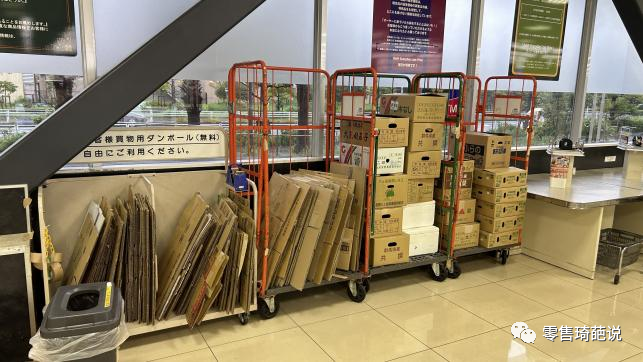 冷凍食品上方的充分利用,極簡的裝修,為了方便員工補貨的滑動式龜車,免費的紙箱提供等等。
