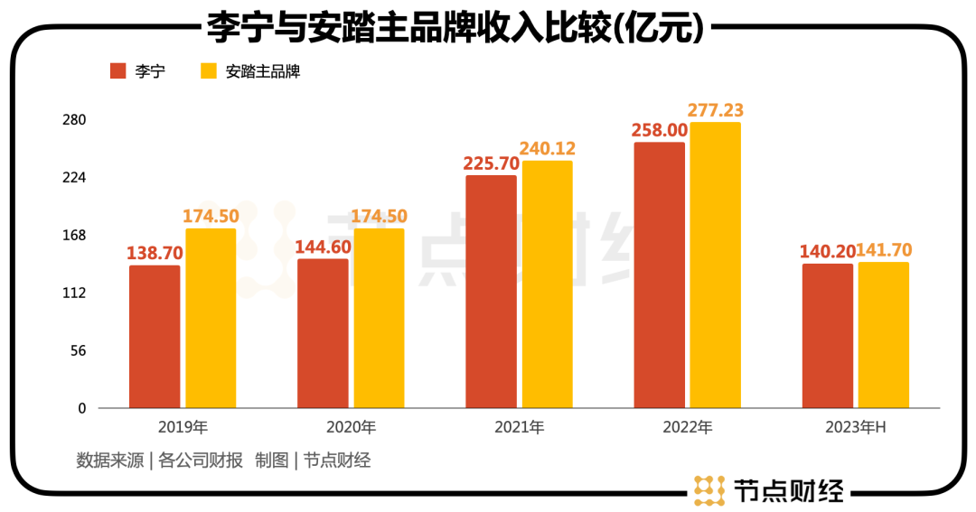 隨著2022年李寧收入超過阿迪達斯中國,當前國內體育服飾品牌的格局已被改寫為安踏、耐克與李寧分列前三名。