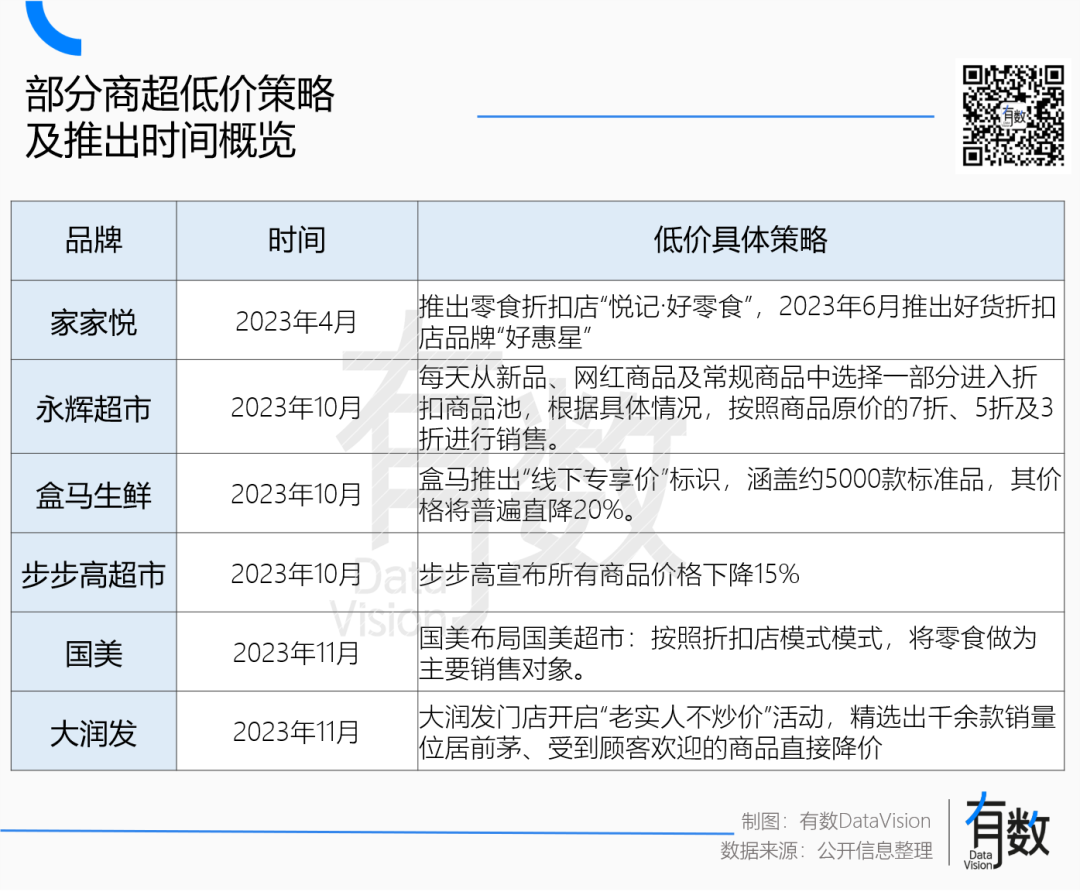 掙扎求活的永輝超市,也開始劃出低價區(qū)域開啟“店中店”;大潤發(fā)開啟“老實(shí)人不炒價”活動,精選千余款熱銷商品直接降價。