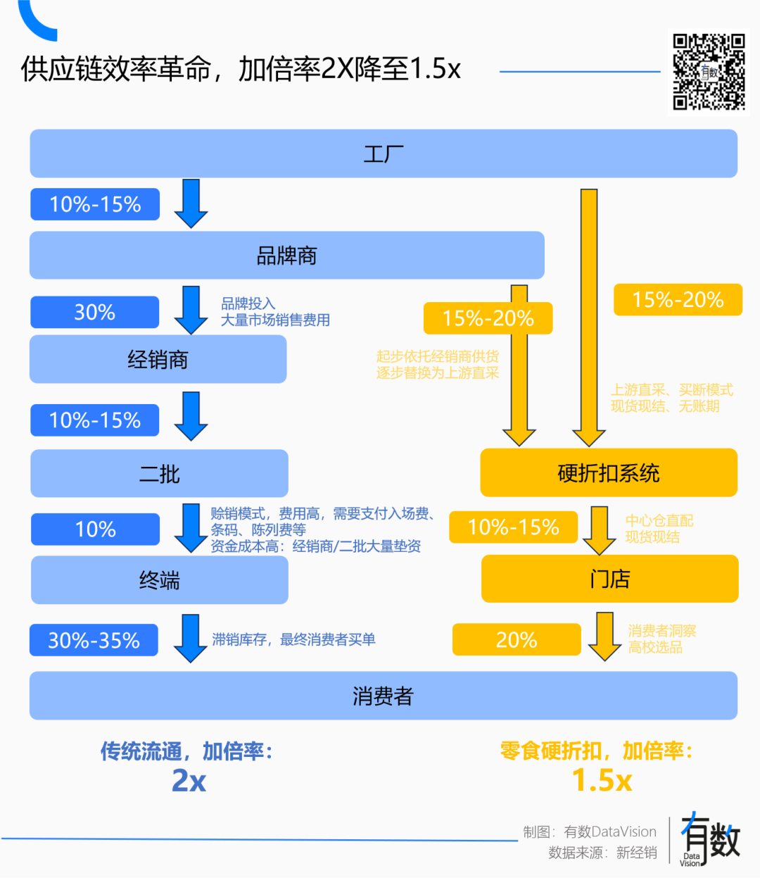 相比商超和便利店,同樣的商品折扣店只需要2-5折,絕大多數(shù)消費(fèi)者都難以拒絕這吸引力[6]。