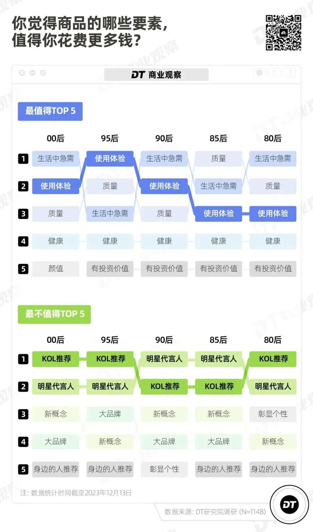 “體驗”指的是,如果一件商品/服務(wù)確實能帶來更好的使用體驗或者滿足自己的情緒價值,貴一點也可以買。