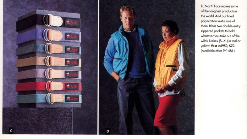 1986年,蘋果開(kāi)發(fā)過(guò)時(shí)裝業(yè)務(wù),其中一件小馬甲就是北面做的。