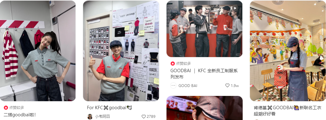 上周,肯德基為了慶祝在中國(guó)門店數(shù)破萬(wàn),找來(lái)白敬亭的潮牌GOODBAI做了一系列新工服,Polo衫、小馬甲、闊腿直筒牛仔褲,確實(shí)很有潮牌范兒。有人已經(jīng)動(dòng)了為衣服去肯德基打寒假工的心思,還有人問(wèn):“入職小時(shí)工能把衣服帶走嗎?”