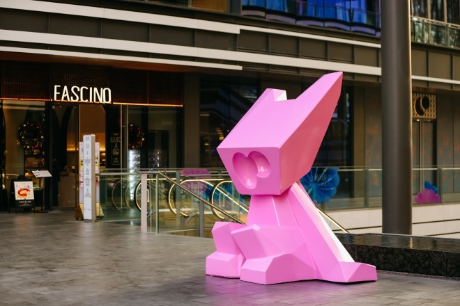 即日起至2024年3月1日期間,首次亮相上海的ONE兔共創(chuàng)計劃也將引領(lǐng)新一輪的出圈打卡熱潮。這只高達2.5米的粉色ONE兔出自跨界設(shè)計師蘇慶龍之手,設(shè)計師采用厚重的質(zhì)感,將本該輕盈的兔子融入在現(xiàn)代商業(yè)建筑中,形成了強烈的視覺沖擊。它微微低著頭,傾聽著往來行人的故事,祝福著囿于忙碌生活的人們能于此沖破重力,擁抱生活、保持粉紅。