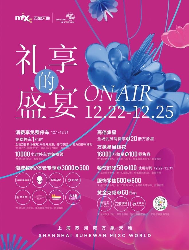 隨著年末購物熱潮來襲,上海蘇河灣萬象天地也將帶來全新的消費驚喜禮遇。12月22日至25日期間,全場會員消費尊享至高20倍萬象星、10000小時停車券免費領(lǐng)、萬象星限時兌100元零售券等禮遇,更有餐飲好味50團100、服飾零售600團800等超值優(yōu)惠,期待與你一起解鎖!