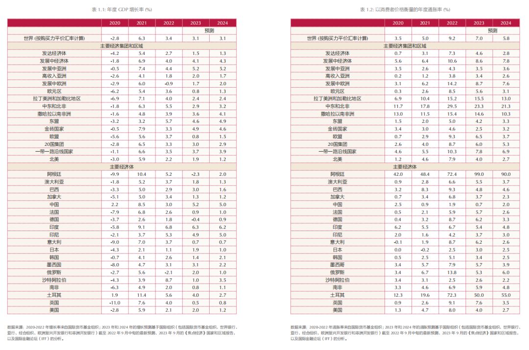 圖注:《IFF2023年全球金融與發(fā)展報告》,2023年全球經(jīng)濟將增長約3.1%,低于2022年的3.4%(使用按購買力平價匯率計算的國家權(quán)重)。其中發(fā)達經(jīng)濟體將增長1.5%,發(fā)展中經(jīng)濟體將增長4.1%。