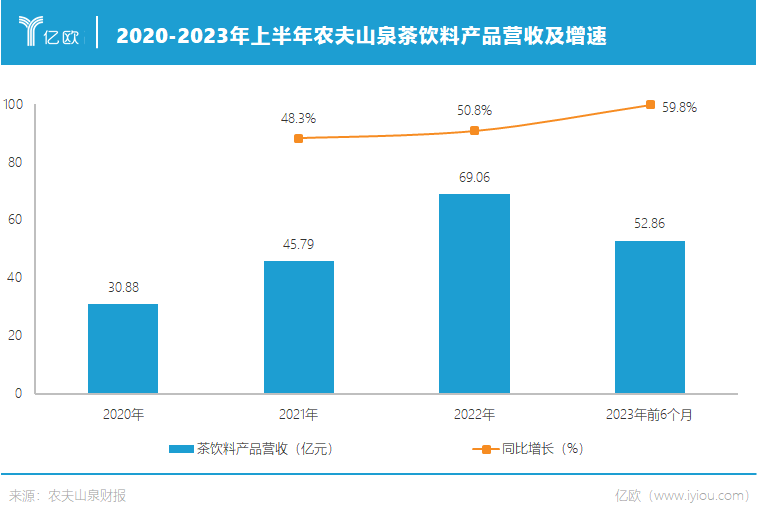 但不知從何時(shí)起,東方樹葉開始“逆襲”。弗若斯特沙利文數(shù)據(jù)顯示,2019年起東方樹葉已經(jīng)成為無糖茶品類中市場(chǎng)占有率第一的品牌;農(nóng)夫山泉2023年中報(bào)顯示,此前12個(gè)月東方樹葉同比增長114%,增速超過即飲茶行業(yè)整體增速9倍以上,東方樹葉連同茶π貢獻(xiàn)了整個(gè)即飲茶市場(chǎng)超過六成的增量。