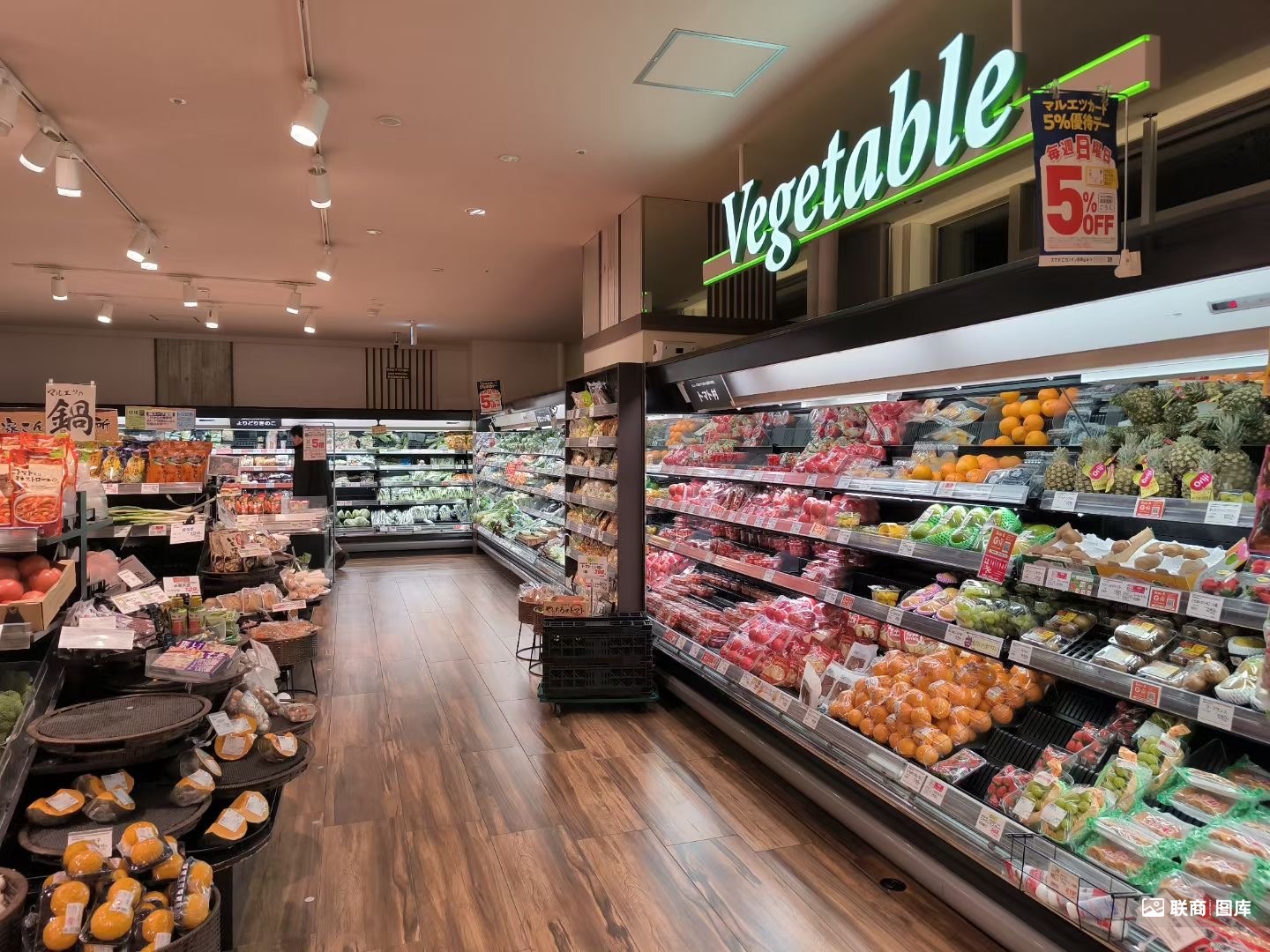 從門店布局來看(見文末的超市圖片展示),“食”之味也一覽無余。入口處旁側(cè)一般設(shè)有一小塊“鮮花售賣區(qū)”,色彩鮮艷,而非一堆單調(diào)的綠植。然后,便是新鮮蔬果區(qū),散稱或分切的商品較為松散的擺在特色陳列架之上,四周靠墻便展示著盒裝蔬果和豆制品,全部都整整齊齊、干干凈凈地擺在冷藏柜之中。