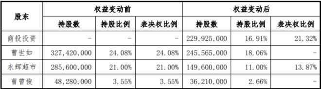從權(quán)益變動表可以清晰看到:四川國資收購最多股份來自永輝超市出讓的10%,實際控制人出讓比例只有6.91%。