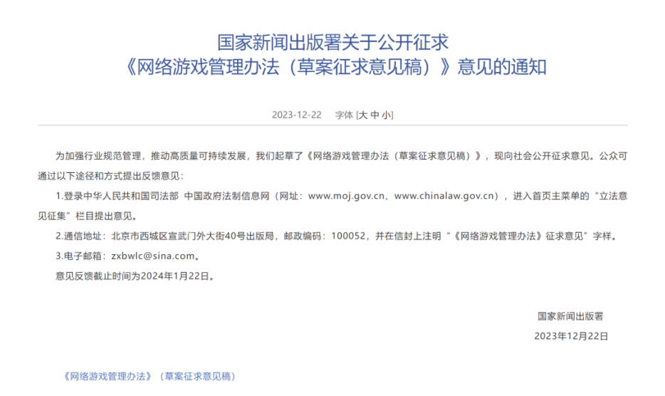 不過昨天國家新聞出版署網站公布的《網絡游戲管理辦法(草案征求意見稿)》(以下簡稱《辦法》)讓游戲行業(yè)又感受到一絲寒意。