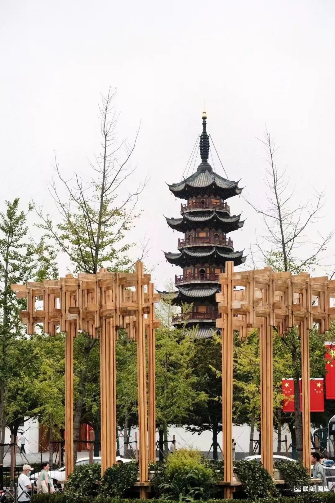 傳統(tǒng)中式建筑中的廟市、創(chuàng)山、若水、林道、街巷、竹林、桃園、節(jié)氣花園、浮橋空間等元素的高度滲透;正對(duì)龍華塔的步行主入口的草坪上,定制了一個(gè)名為“塔影”的打卡裝置,用視覺可見的藝術(shù)形式,將“塔影”固化;二樓露臺(tái)的“龍華戲臺(tái)”是重頭戲,最大程度的還原了傳統(tǒng)梨園文化,為商業(yè)與傳統(tǒng)文化的融合共創(chuàng)提供新的方向。