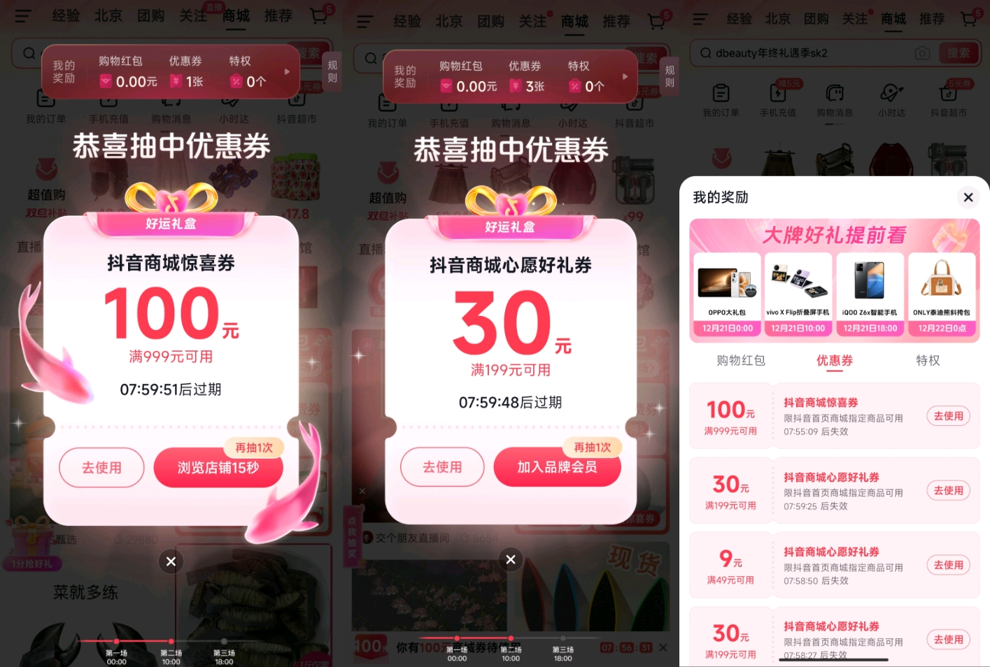 另外,即使沒(méi)有當(dāng)上錦鯉,抖音商城“2024好運(yùn)請(qǐng)查收”活動(dòng)也帶來(lái)更多福利,提供超百萬(wàn)份金額不等的購(gòu)物紅包和優(yōu)惠券,抖音商城驚喜券、心愿好禮券,加上抖音商城雙旦好禮季的大促優(yōu)惠,下單時(shí)可直接抵扣,購(gòu)物真的特別劃算!
