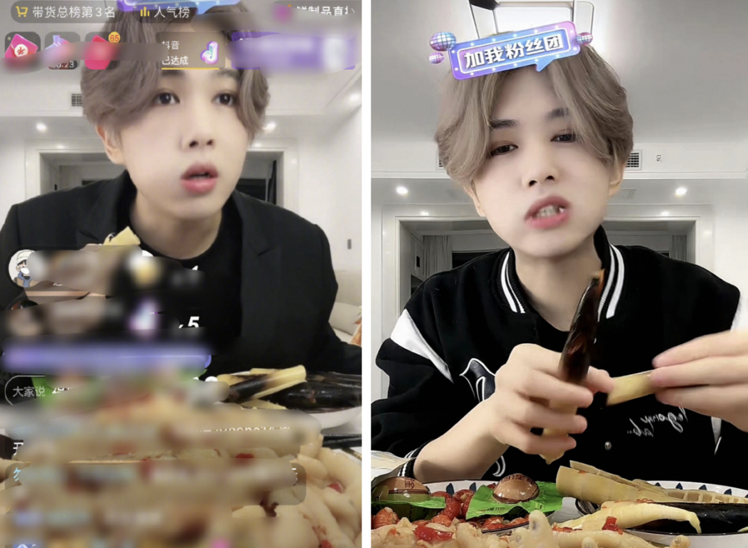 凌達(dá)樂大多數(shù)直播的時(shí)間都定在晚上十一點(diǎn),避開了大主播開播的黃金時(shí)段,轉(zhuǎn)型吃播,帶貨低客單價(jià)的零食飲料商品,甚至因?yàn)樵谥辈ラg“吃得賣力”吸引來了不少真情實(shí)感的粉絲,被人調(diào)侃是“奶棗小王子”。