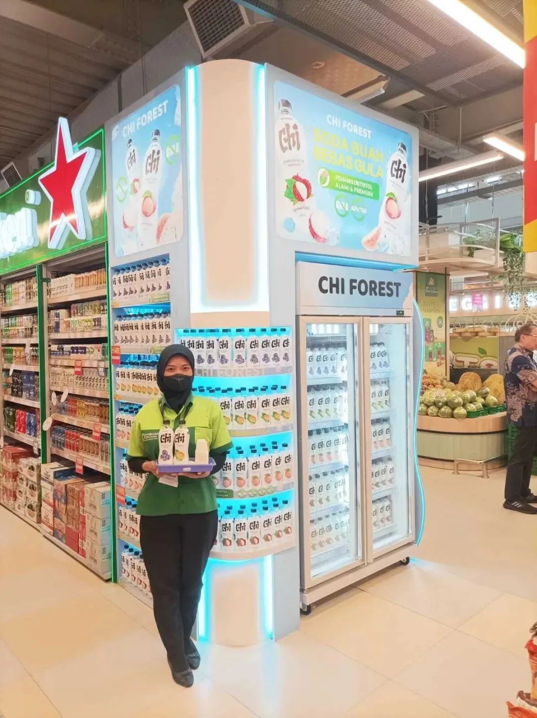 在下游,依托著氣泡水,元氣森林還與農(nóng)夫山泉展開了冰柜大戰(zhàn)。據(jù)食品內(nèi)參報道,2020年元氣森林定下目標,計劃投放的8萬臺智能冰柜,最晚要在當年4月完成投放,而為狙擊元氣森林推廣自家氣泡水,農(nóng)夫山泉老板鐘睒睒親自帶隊,開啟"天降財神"活動。
