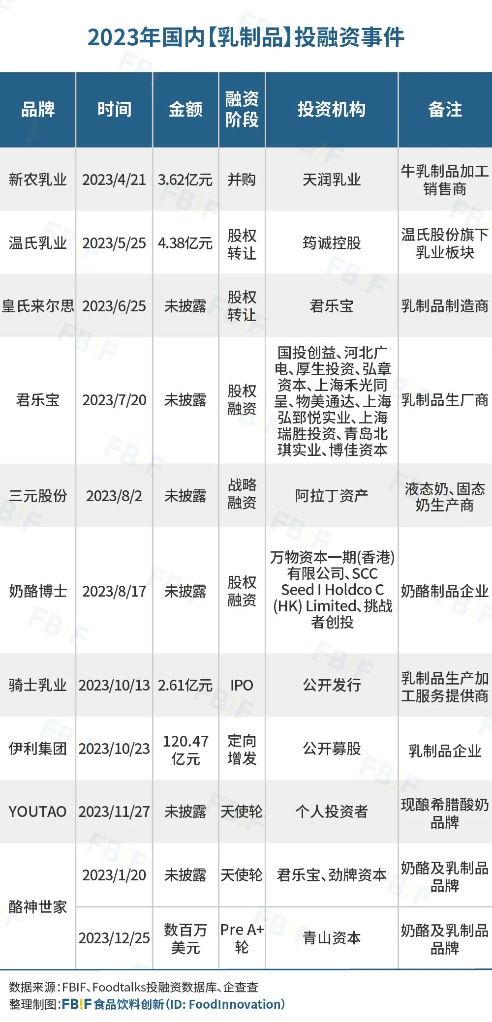 2023年國內(nèi)乳制品行業(yè)共發(fā)生11起融資事件,與2022年持平。