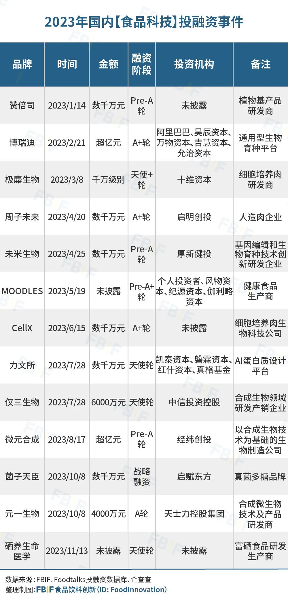 2023年,共有14家食品科技公司拿到了新一筆投融資,且每一起融資額均在千萬元人民幣以上。這些企業(yè)有一個共同的特征是,成立時間不長,且處于早期融資階段。