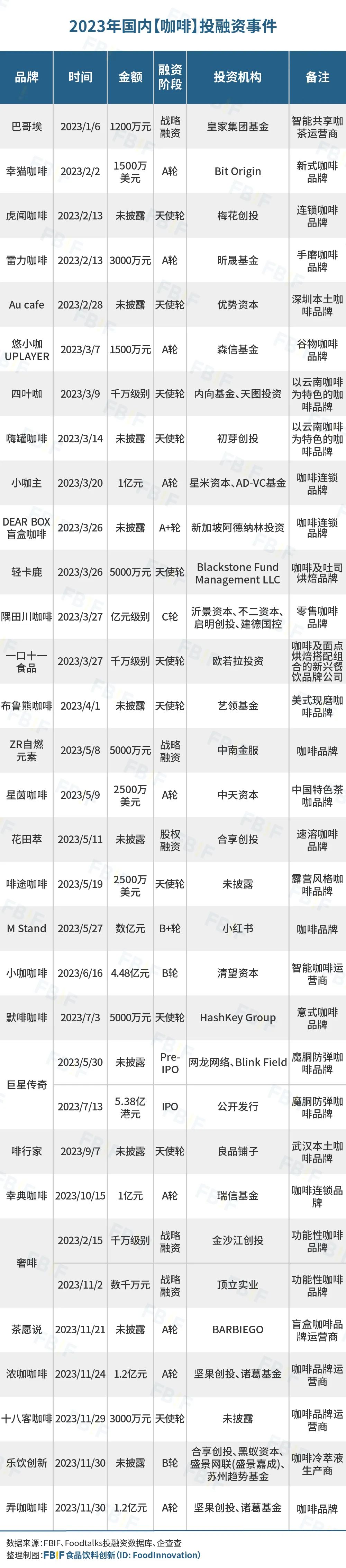 2023年咖啡品類上共發(fā)生了32起融資事件,與去年的29起相比增加了3起。