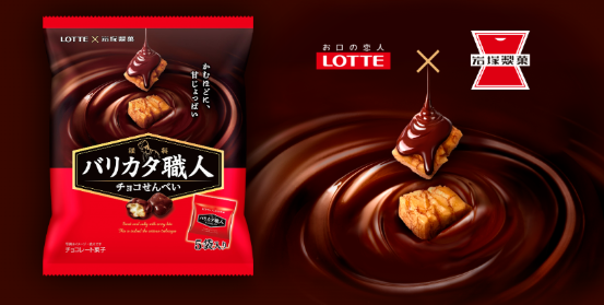 于是,樂天與米果制造商合作的這款“醬油風味”巧克力誕生了。巧克力部分由牛奶巧克力和醬油粉混合制作而成,巧克力的夾心則是由100%日本國產(chǎn)大米制成的醬油風味米果。