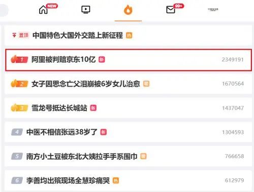 12月29日,#阿里被判賠京東10億#的詞條登上微博熱搜榜首位,且熱度還在持續(xù)上升。12月29日下午,“京東黑板報(bào)”發(fā)布《關(guān)于京東訴阿里巴巴“二選一”案一審勝訴的聲明》。《聲明》稱,北京市高級人民法院做出判決,認(rèn)定阿里巴巴濫用市場支配地位實(shí)施“二選一”的壟斷行為成立,對京東造成嚴(yán)重?fù)p害,并判決向京東賠償10億元。