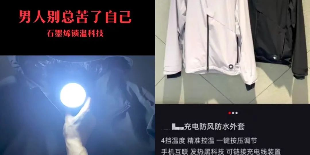 有的沖鋒衣,號稱添加石墨烯,為了體現(xiàn)暖,拿燈泡接觸衣服都能亮;有的更玄乎了,用手機就能智能控溫,還能精準調(diào)節(jié)溫度,只要能卷的都得加上。