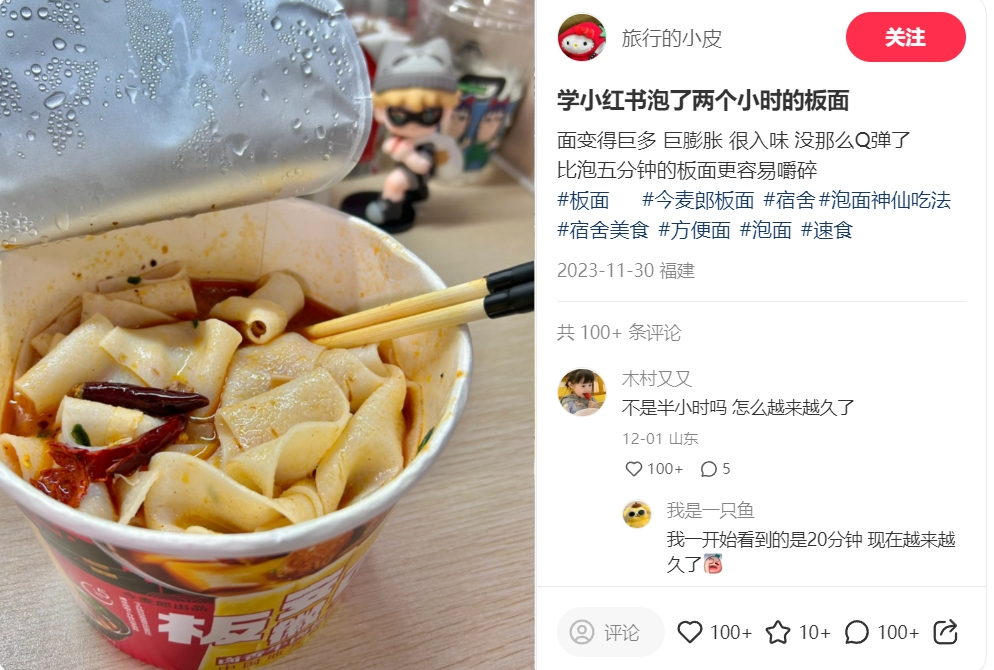 但畢竟是經(jīng)歷過新消費浪潮洗禮的年輕消費者,驚訝的時間,往往和對品牌的忠誠度成正比,短暫驚訝后,討論的焦點,逐漸從“為什么這么久”,走向了“這款板面,到底是泡20分鐘好吃,還是泡30分鐘好吃”,網(wǎng)友們還分享起了各自的心得。