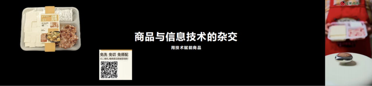 這些年我們投入巨大代價在研發(fā)商品和開發(fā)產(chǎn)品上,我們推出了一個系列叫做"告別刀"。這意味著讓消費者家里不再需要刀,做飯不再用刀,在門店切好洗好,回家翻炒一下就行,我們一直在朝這個方向努力。