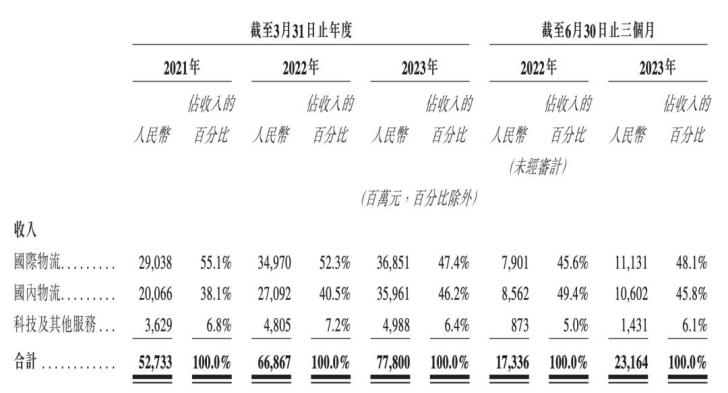 雖然國際物流的營業(yè)收入一直高于國內(nèi)物流,但比重一直在下降:2021財年國際物流業(yè)務(wù)的比重還有55.1%,到了2022財年降至52.3%,2023財年更是降至47.4%。