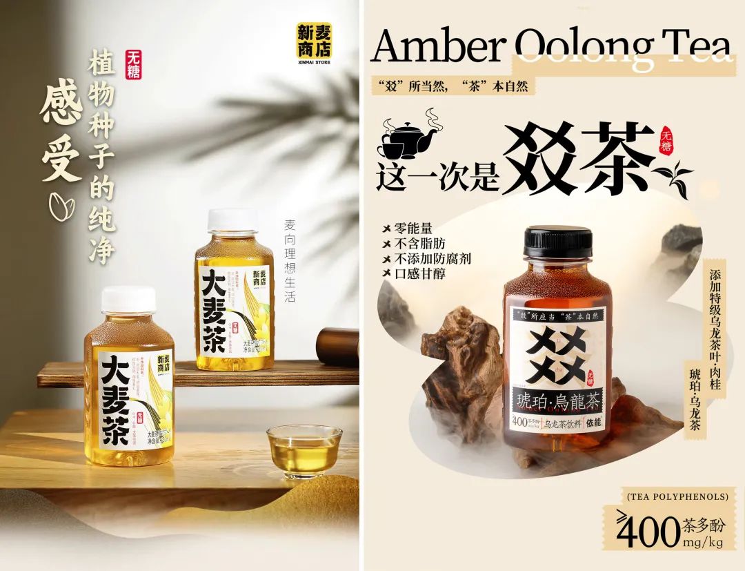 12月12日,依能飲品還根據(jù)目前消費(fèi)趨勢推出了兩款無糖飲料——大麥茶和?茶,大麥茶主打輕養(yǎng)生概念,以大麥、麥芽為原料,配料表干凈;而?茶主打100%原葉萃取,并添加特級(jí)烏龍茶葉·肉桂,茶多酚含量≥400mg/kg。