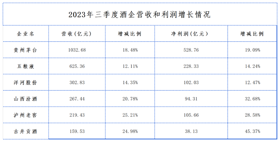 但因白酒行業(yè)普遍采用“先款后貨”模式,通過向經銷商壓貨,讓經銷商承擔庫存壓力,也能帶動企業(yè)營收和利潤增長;诖,去年三季度多家酒企營收和利潤均出現(xiàn)雙位數(shù)增長。
