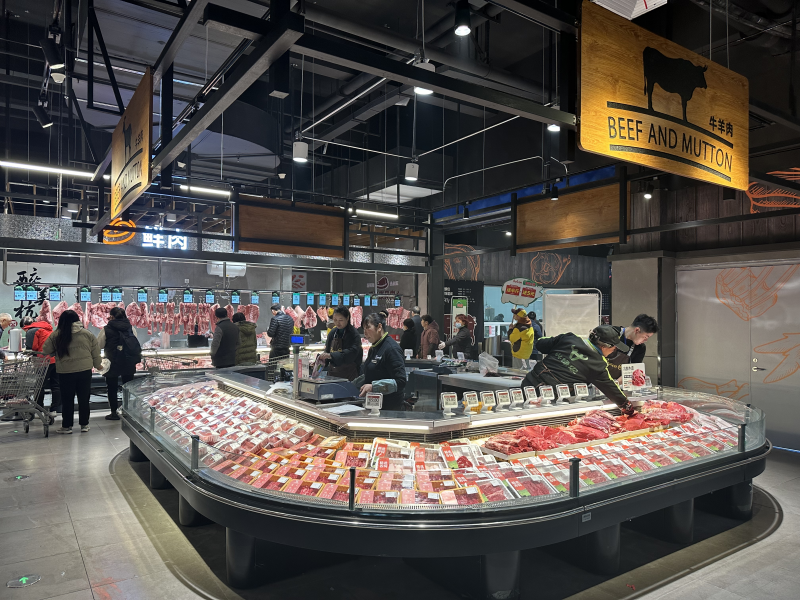 走進(jìn)門店,映入眼簾的是琳瑯滿目的水果區(qū)域,丹東草莓、車?yán)遄、水果果切、果品果汁讓人眼前一亮;水培蔬菜、助農(nóng)產(chǎn)品等新鮮蔬菜滿足顧客日益提升的品質(zhì)生活需求;肉禽板塊氣調(diào)包裝的肉品,火鍋食材等可一站式采購;水產(chǎn)生猛海鮮、三文魚、金槍魚等一應(yīng)俱全,切片、斬塊刺身也是亮點(diǎn)不斷。讓人們縱享美食的同時(shí),吃的放心、舒心、開心。