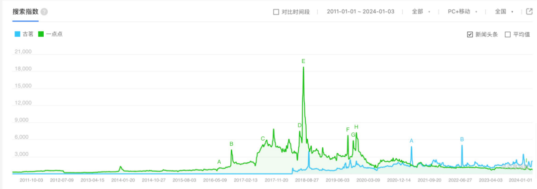 對比古茗與一點點的搜索指數(shù),情況并不會太好。這幾年,一點點因創(chuàng)新不力、跟不上市場消費趨勢,熱度斷崖式下滑,市場存在感大大削弱,以至于“一點點倒閉了嗎”的詞條登上了熱搜。而即便在這樣的情況下,古茗與一點點的搜索熱度幾乎保持差不多的水平。側面或也可以看到,古茗的確很“低調”,在新茶飲市場中并非“顯眼包”的角色。