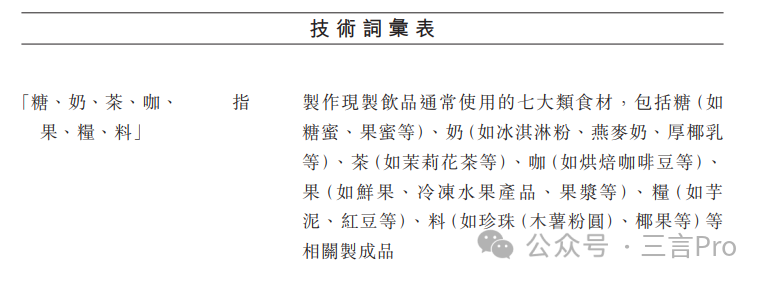 據(jù)招股書介紹,蜜雪冰城制作現(xiàn)制飲品通常使用的七大類食材,包括糖(如糖蜜、果蜜等)、奶(如冰淇淋粉、燕麥奶、厚椰乳等)、茶(如茉莉花茶等)、咖(如烘焙咖啡豆等)、果(如鮮果、冷凍水果產品、果漿等)、糧(如芋泥、紅豆等)、料(如珍珠(木薯粉圓)、椰果等)等相關制成品。