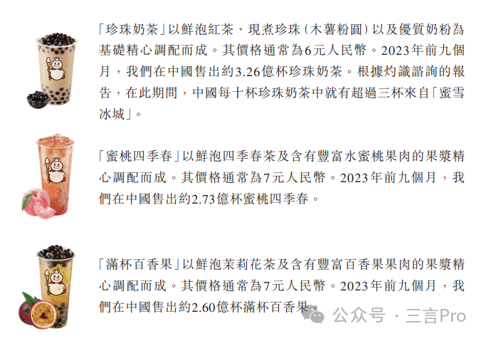 招股書顯示,2023年前九個月,蜜雪冰城的前五大暢銷常青款產品占其在中國總出杯量的約42.3%。