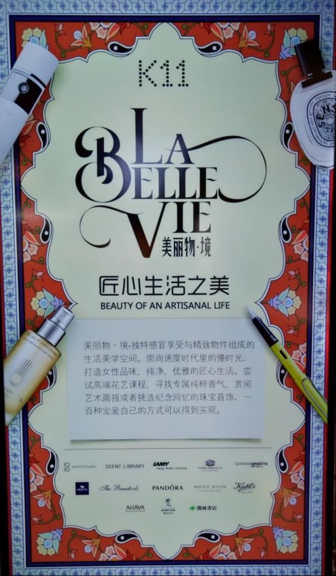 ①上海K11的自營空間品牌如“LA BELLE VIE 美麗物·境”, 為現(xiàn)代都市女性構(gòu)建了一個(gè)精致生活區(qū),提供精品配飾、儀器、護(hù)膚等女性時(shí)尚品牌,以及生活方式、咖啡品牌。