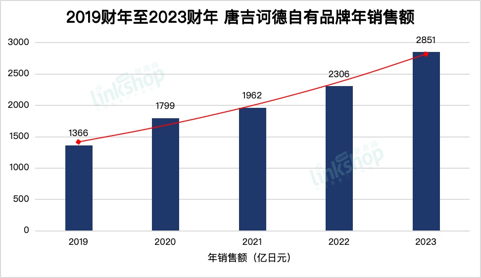 其中,自有品牌“熱情價格”系列商品在其經(jīng)營中占據(jù)不可或缺的地位。唐吉訶德2023年6月期的財報數(shù)據(jù)顯示,其自有品牌“熱情價格”的銷售額達(dá)到了2851億日元,占其總銷售額的18.2%,表明了自有品牌對于其業(yè)績的重要性。
