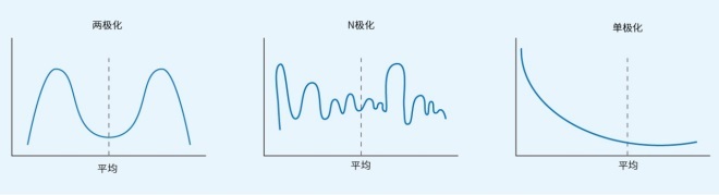 但是在市場、社會、個人生活和價值觀中,以平均值為中心,左右對稱的正態(tài)分布圖表中的"典型性"逐漸消失,往中間值最小的"兩極化"分布。