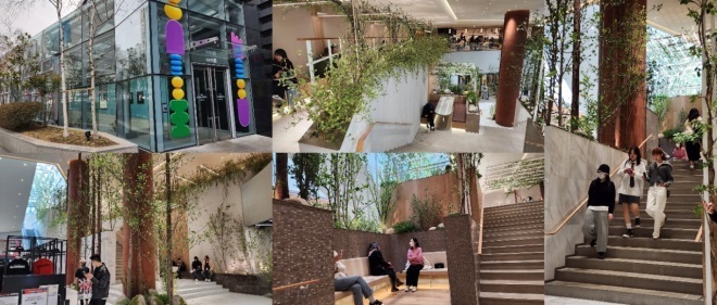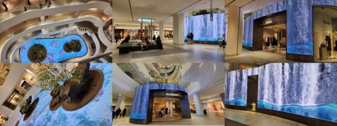 特別是在1樓設置了現(xiàn)有百貨商店中看不到的12米高的人工瀑布的"Water fall Garden/瀑布花園(740㎡)",5樓在20m層高處的天然草坪上建有樹木和多樣的花朵,計劃建設面積約3300㎡的室內綠色公園"Sounds Forest",賣場各處共裝飾了1.124萬㎡規(guī)模的室內造景空間,讓人產生仿佛不是百貨而是在主題公園或野外公園的幻想感已經達成了韓國最出名的網紅打卡點其中一個。