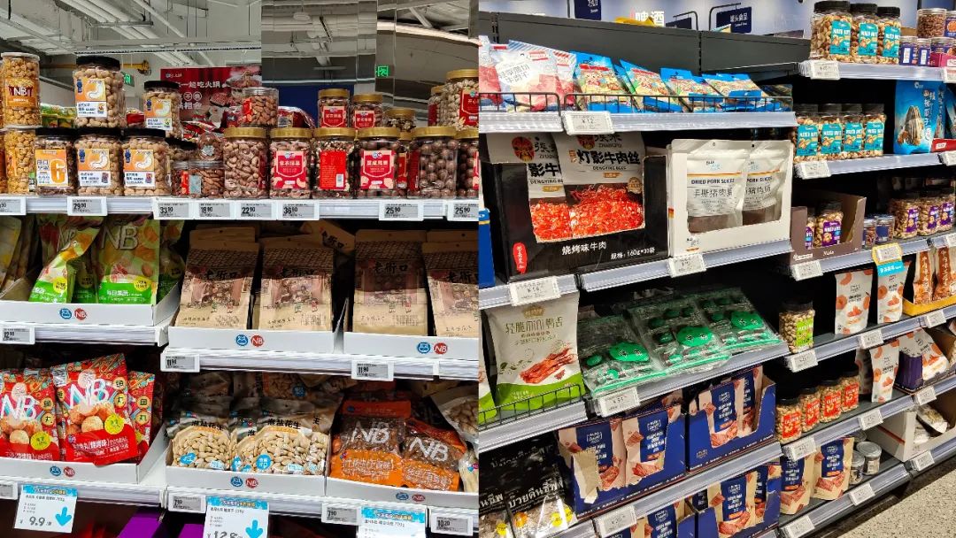 最關(guān)鍵的是,在單一品類下,奧樂齊“超值”系列的商品覆蓋度遠不及盒馬NB系列商品在盒馬奧萊門店的數(shù)量。比如零食,作者僅在奧樂齊門店的零食區(qū)發(fā)現(xiàn)一款“超值”系列的豬肉脯,而盒馬奧萊的零食貨架上有多款高性價比的NB系列商品。