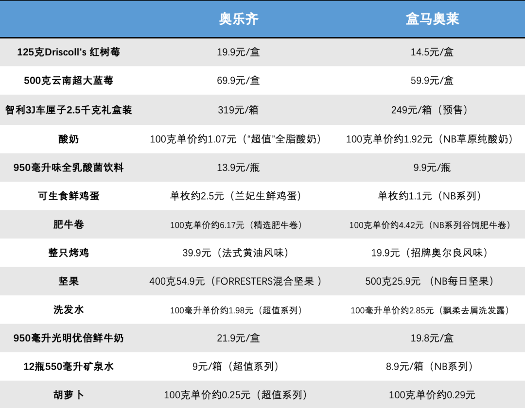 盒馬奧萊比奧樂齊有0.1元的價格優(yōu)勢,足見本土折扣零售價格戰(zhàn)的激烈程度。