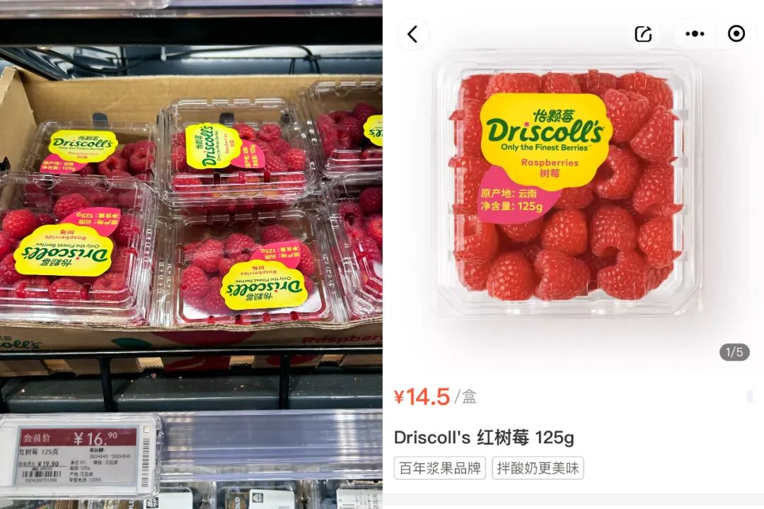 比如125克的Driscoll's 紅樹莓,盒馬奧萊售價14.5元一盒,奧樂齊的非會員價為19.9元。
