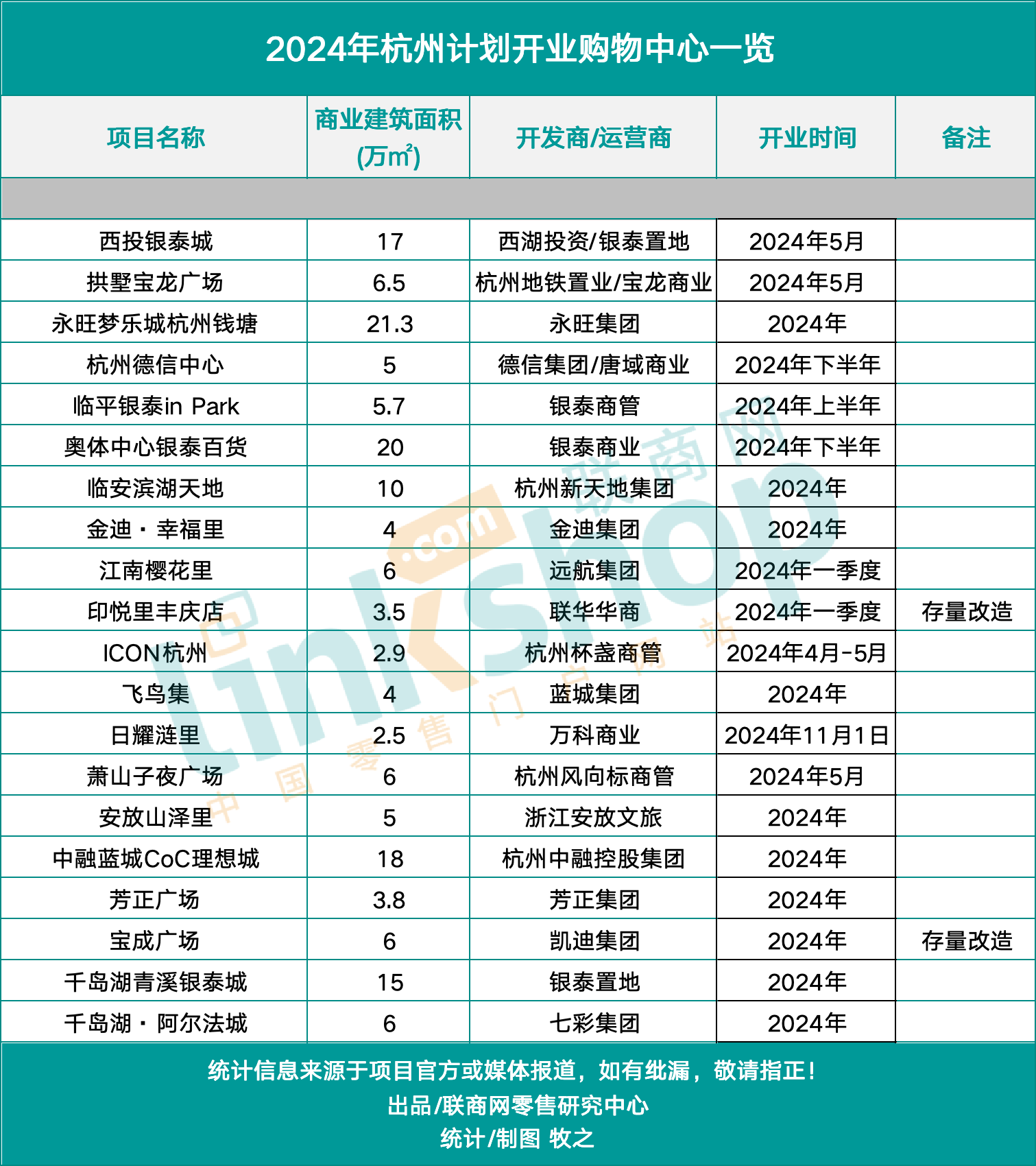 附:2024年杭州計(jì)劃開(kāi)業(yè)購(gòu)物中心一覽