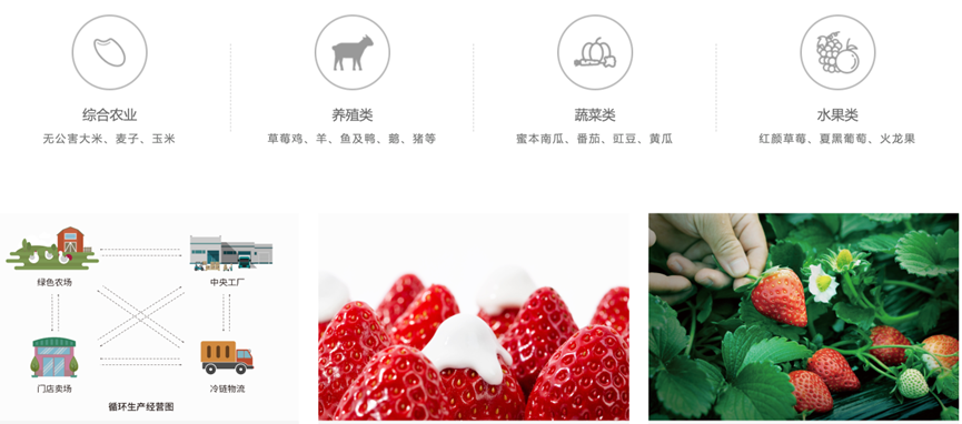 其自家農場囊括綜合農業(yè)(無公害大米、麥子、玉米)、養(yǎng)殖類(草莓雞、羊、魚及鴨、鵝、豬等)、蔬菜類(蜜本南瓜、番茄、豇豆、黃瓜)、水果類(紅顏草莓、夏黑葡萄、火龍果)