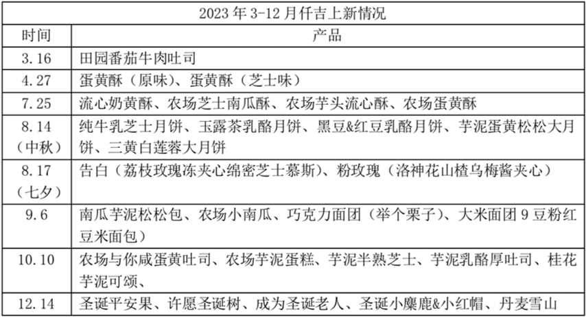 仟吉產品上新情況 制表:張云清