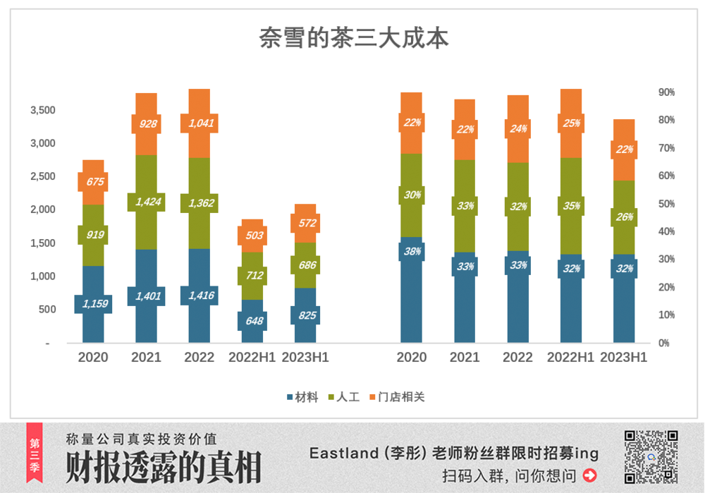 按照占營收的比例來看,奈雪的茶三大主要成本為材料成本、員工成本和門店成本。
