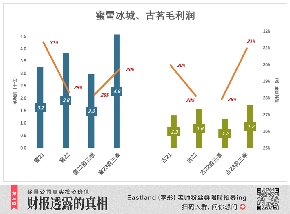 蜜雪冰城、古茗毛利潤率都在30%左右。
