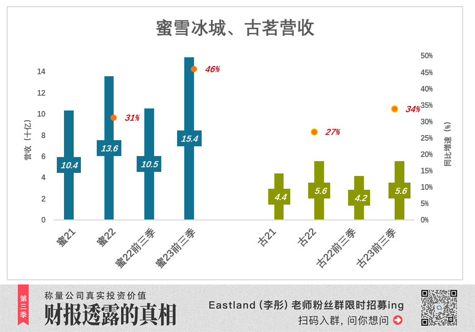 2023年前三季,蜜雪冰城營收154億,同比增長46%;