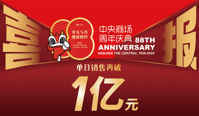 2024年,南京中央商場88周年。在城市的繽紛之中,如星閃耀,88周年單日銷售破億元,「非凡與共·感恩相伴」八十八年的陪伴與守望,凝聚向新的力量,開啟嶄新的篇章。