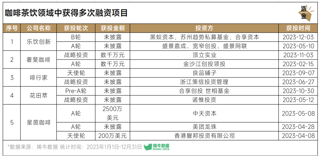 咖啡茶飲領(lǐng)域中獲得多次融資的項(xiàng)目