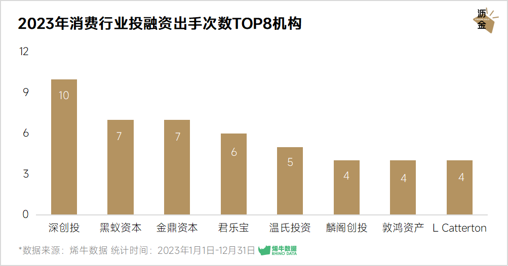 2023年消費(fèi)行業(yè)投融資出手次數(shù)TOP8機(jī)構(gòu)