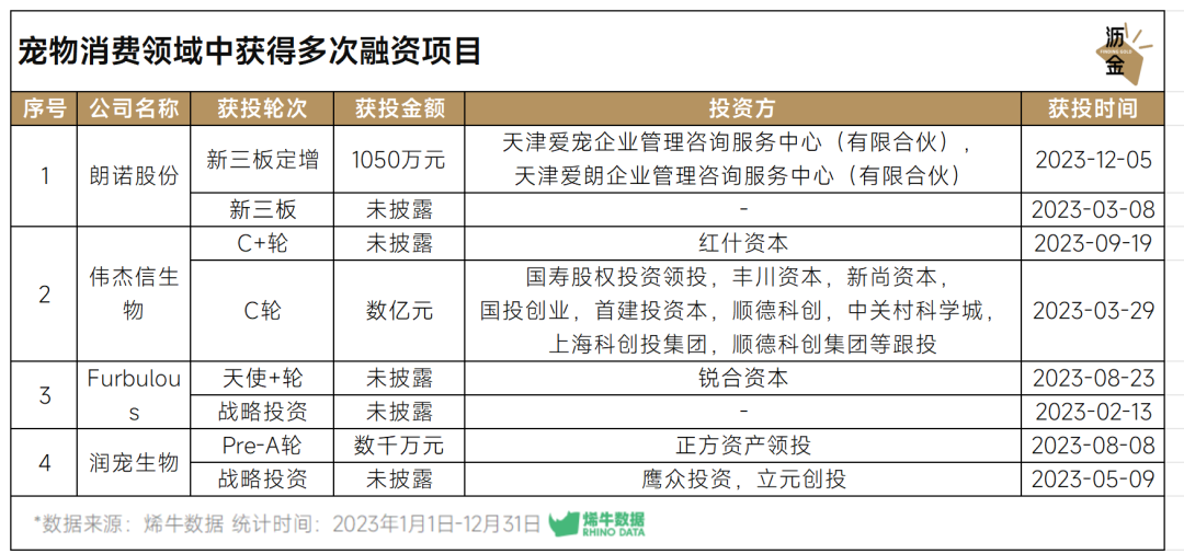 寵物消費(fèi)領(lǐng)域中獲得多次融資的項(xiàng)目